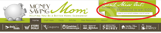 If you have a good incentive, consider moving it above your logo and masthead (as Money Saving Mom does here):